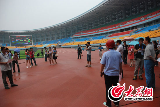 今天下午,聚焦美麗山東--中國網(wǎng)絡(luò)媒體山東行西線采訪團(tuán)來到聊城市體育公園,參觀了正在建設(shè)中的體育場(chǎng)。 記者 郭豪 攝