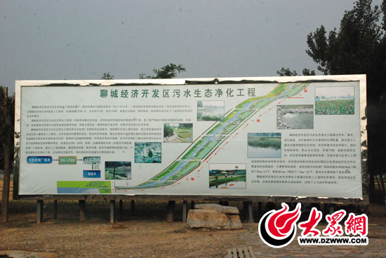 在聊城經(jīng)濟(jì)開發(fā)區(qū)污水生態(tài)凈化工程展板上,列出了開發(fā)區(qū)污水凈化工程的詳細(xì)情況。 記者 郭豪 攝