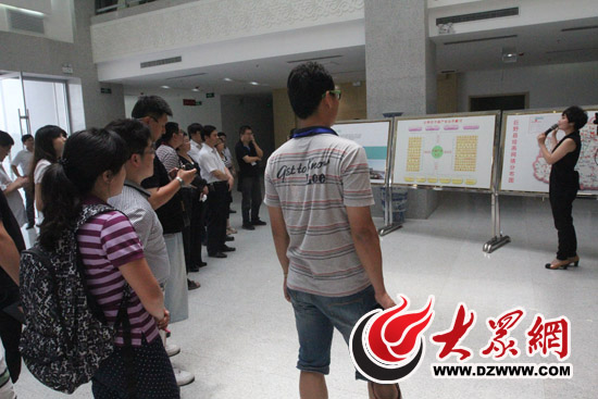在工作人員的介紹下,采訪團的記者們了解了農(nóng)民書畫院的發(fā)展及規(guī)劃。(記者 郭豪 攝)