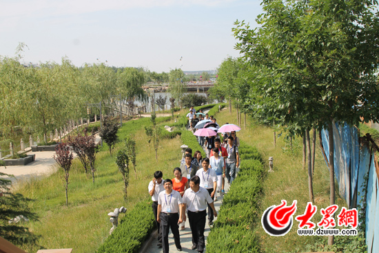 19日下午,“聚焦美麗山東--第九屆網絡媒體山東行”采訪團來到秦皇河公園采訪。大眾網記者 馬鑫 攝