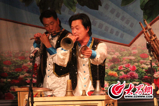 大眾網菏澤6月19日訊記者 郭豪 呂斌)今天晚上,“聚焦美麗山東—中國網絡媒體山東行”西線采訪團來到菏澤市老年干部中心,觀賞了一場國家級非物質文化遺產展演。其中,巨野縣陳家嗩吶班以精彩震撼的表演,獲得采訪團陣陣掌聲。大眾網記者采訪得知,這支即將登上第十屆中國藝術節舞臺的嗩吶隊,竟是從農村吹響器一步步走出來的。