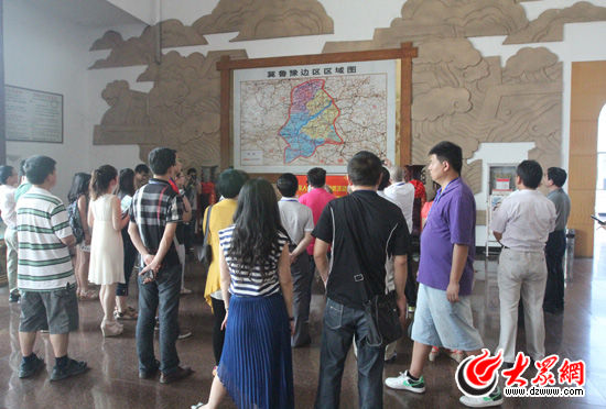 大眾網(wǎng)濟(jì)南6月20日訊(記者 赫洋 郭豪 呂斌)在參觀完菏澤市博物館后,“聚焦美麗山東——第九屆中國網(wǎng)絡(luò)媒體山東行”西線采訪團(tuán)來到菏澤冀魯豫邊區(qū)革命紀(jì)念館采訪。菏澤市是革命老區(qū),抗日戰(zhàn)爭和解放戰(zhàn)爭時期,由共產(chǎn)黨領(lǐng)導(dǎo)的冀魯豫支隊曾在菏澤當(dāng)?shù)刈鲬?zhàn)多年,留下了一批可歌可泣的傳奇故事。而在這片革命的土地上,不少采訪團(tuán)記者也覺得自己上了一堂愛國主義教育課。