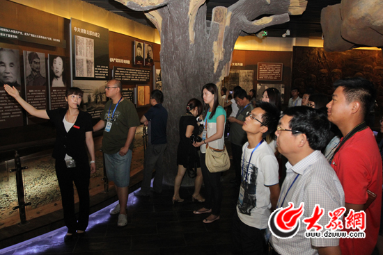 21日上午,記者們來到東營市大王鎮劉集村展覽館采訪。