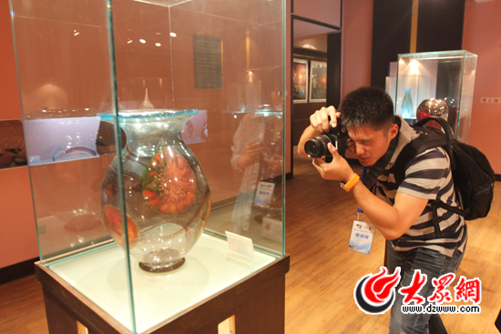 “喜歡它的鮮艷,喜歡它的純凈!币堰M入博物館記者們就忙著搶拍各色琉璃藝術品。大眾網記者 馬鑫 攝