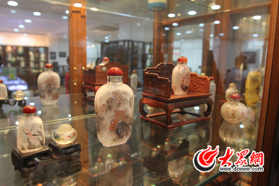 琉璃博物館內展出的現代內畫鼻煙壺。大眾網記者 馬鑫 攝
