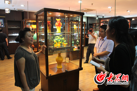 大眾網淄博6月22日訊(記者 馬鑫 見習記者 仇晶 )“世界琉璃在中國,中國琉璃在博山”,22日下午,“聚焦美麗山東--第九屆中國網絡媒體山東行”北線采訪團來到有琉璃之鄉之稱的淄博市博山區進行采訪,在博山琉璃博物館,千余件各色琉璃精品讓記者們眼花繚亂,而經過千年傳承的琉璃制作技藝如今也獲得了更大發展,成為中國的國禮,璀璨于世界。