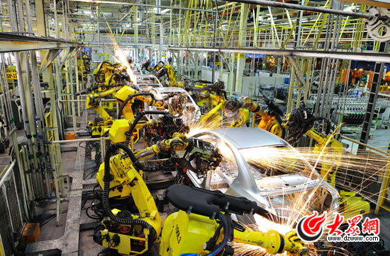 19日下午,當(dāng)采訪團(tuán)記者走進(jìn)上海通用東岳汽車有限公司生產(chǎn)車間時(shí),車間工人們正在緊張的忙碌著。在機(jī)器的轟鳴聲中,記者們用鏡頭記錄了一輛小汽車從一堆生產(chǎn)原件被生產(chǎn)組裝成一輛具備正常上路條件的成品汽車。