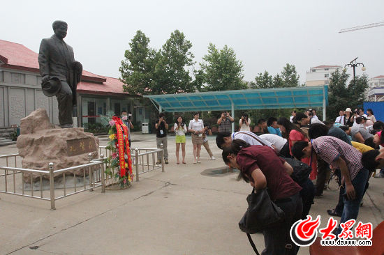 今天下午,“聚焦美麗山東——第九屆中國網絡媒體山東行”西線采訪團來到了孔繁森紀念館。全體采訪團成員在孔繁森的塑像前三鞠躬后,采訪團代表向孔繁森紀念館敬獻花籃,然后懷著崇敬的心情進館參觀。