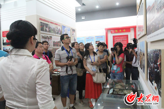 采訪團的記者們仔細觀看孔繁森同志的事跡。大眾網記者 郭豪 攝
