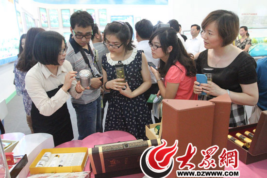 工作人員向采訪團(tuán)的記者們介紹牡丹膠囊及其他牡丹深加工產(chǎn)品。記者 郭豪 攝