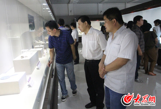 菏澤市委常委、宣傳部長王永江(中)陪同采訪團(tuán)參觀博物館。(記者 郭豪攝)