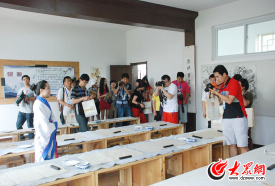 西線采訪團的記者們來到儒源儒家文化體驗基地采訪參觀。(記者 郭豪攝)