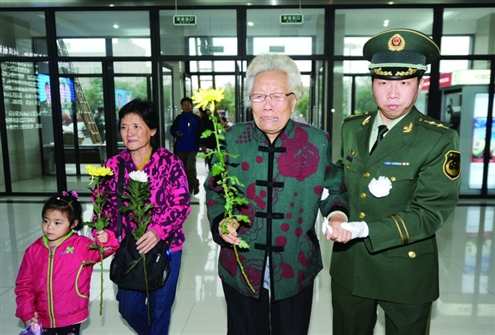 76歲的周秀珍老人就住在距離石景山支隊不遠處的居民小區,昨日下午,老人和鄰居一同趕來石景山支隊,默默地將鮮花放到兩位英雄犧牲時所穿的作戰服前。