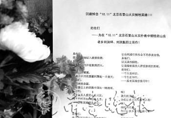 滕州老鄉(xiāng)把送行的詩歌放在鮮花旁。