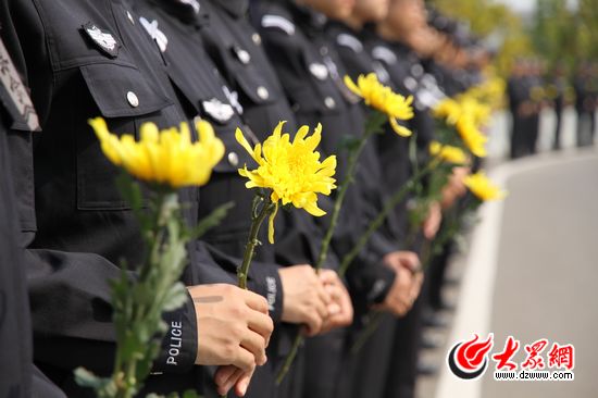 前來送行的隊伍,不僅有公安、市直機關工作人員、武警戰士還有學生、農民工、出租車司機等不同身份不同職業的群眾,他們自發的站在道路兩旁,手舉鮮花、橫幅,胸前佩戴小白花,表達自己對英雄的悼念之情。當靈車駛過時,不少群眾忍不住落下眼淚。