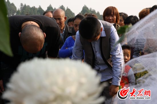 來此為英雄送行的上萬名群眾,一一排好隊,自發的將手中的鮮花,放到劉洪坤墓碑前。“知道今天要在這舉行安放儀式,我特地開車趕過來的。從網上看到他的英雄事跡后,希望最后一程能夠送送他,用這束鮮花來祭奠我們滕州永遠的英雄劉洪坤。”從滕州市區開車20分鐘趕到現場的李先生說。