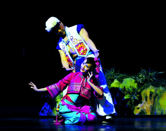 10月15日、16日,作為文華獎(jiǎng)參評(píng)劇目,陜西省歌舞劇院排演的大型原創(chuàng)歌舞音畫《金格燦燦彩》在濰坊上演(上圖)。