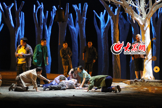 大眾網濟南5月12日訊記者 劉芳芳) 11日晚,“十藝節”第七屆全國優秀話劇展演的閉幕作品《楓樹林—一個村官的最后90天》在山東劇院上演。該劇是由江蘇省話劇團和南京市話劇團聯合演出,是由著名編劇孟冰擔綱編劇、著名導演宮曉東擔任導演的原創話劇。整個演出歷時2個小時,沒有出現一個觀眾提前退場,觀眾在動情之處潸然淚下。