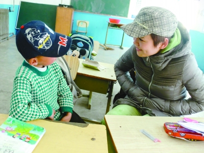 圖一:主演蘆宏非常注意觀察鄉村孩子的言行神態,正在和孩子學當地的口頭禪。