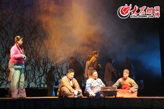 該劇以濃郁的黑土氣息和多變的藝術表現(xiàn)手法,加上演員李雪飛等人的精彩演繹,贏得了在場近千名淄博觀眾的滿堂喝彩。7時30分,龍江劇《鮮兒》正式開演,在悲壯的背景音樂聲中,一群衣衫襤褸的人們相扶相攜,邁著緩慢而堅定的步伐出現(xiàn)的舞臺中央。