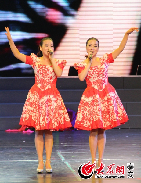 在后臺,記者見到了這一對“姊妹花”,也是該組節目的主唱與人物原型:卞波、卞濤一對雙胞胎姐妹,她們告訴記者,當時劇團創作這首歌曲,一個是基于她們自己的親身經歷,另外,在她們生活工作的天津市濱海新區,作為國家級新區和國家綜合配套改革試驗區,在這里,有著千千萬萬和她們一樣,從農村來到城市里的務工人員,他們的生活經歷,讓這對“姊妹花”感同身受,所以,每次演出,總能想起自己曾經走過的路,每一次唱起這首歌,總能讓她們熱淚盈眶,她們想通過一次次的演出,用演唱的形式,讓更多的城里人,了解外來務工人員的艱辛,讓更多的農村人,在城市里找到屬于自己的夢。談及今晚的演出,卞濤告訴記者,泰安是個美麗的城市,這里的舞臺很好,觀眾也十分的熱情,能夠有幸到泰安來參加第十屆中國藝術節的演出,讓她們倍感驕傲。