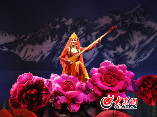 揭開面紗,向世人展示你的神奇與夢幻般的美麗……10月20日晚,十藝節精品劇目新疆大型民族風情音畫劇《美好家園》在煙臺市萊山區五彩廣場膠東劇院登臺亮相,讓人們領略了一個真實、美麗、和諧、團結、充滿異域風情的新疆。天山、昆侖山、天池、烏拉泊古城、千佛洞、胡楊、婚禮等等人們熟悉的地方、景觀、民族風俗、歷史故事紛紛上演。