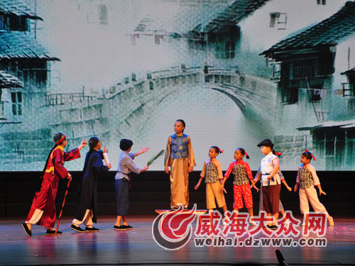 據了解,《看社戲》從創作最初就是以“群星獎”為目標的,在參賽之前經常在當地的廣場等地進行演出,受到百姓的一致好評。參賽的演員中,年齡最小的8歲,最大的也只有13歲。越城區少兒藝術學校校長金鳳仙告訴記者,經過平時的多場演出,孩子們的表演已經越磨越精,并有著豐富的舞臺經驗,盡管是第一次登上這么大的舞臺,但是依然表演得很好。