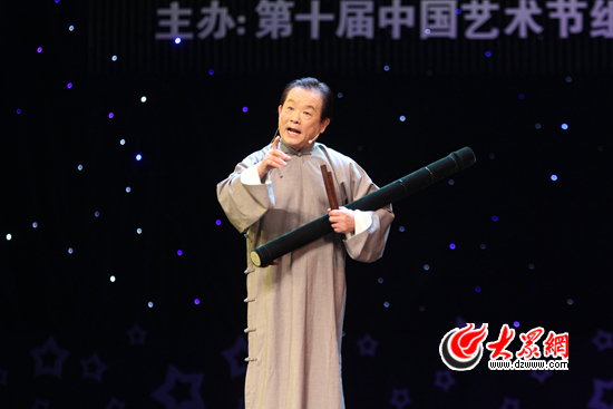在整場演出中,由山東省濟南市群眾藝術館群星藝術團帶來山東琴書《親家親》可謂獲得了滿堂彩。《親家親》講述了單身老年人的婚戀問題,詼諧幽默的唱詞中融合了“坑爹”等網絡詞語,不時讓觀眾爆發出一陣陣笑聲。4位主要演員一唱一和、邊唱邊演,表演傳神動人,贏得現場觀眾熱烈的掌聲和叫好聲。“我得40多年沒聽過琴書了,今天一聽,還真是原來的調調啊!”現場觀眾評審孟憲蕓看完演出后,頗為激動地說。