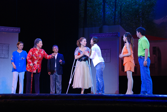 全劇情節(jié)跌宕起伏、樸實(shí)動(dòng)人,鏗鏘大氣的豫劇唱腔中融合了《我們新疆好地方》等觀眾耳熟能詳?shù)母枨途哂袧庥粜陆厣母栉,讓人眼前一亮,贏得了觀眾一陣陣熱烈的掌聲。