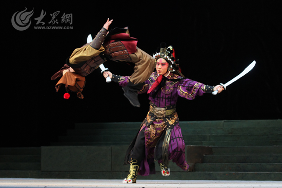 無獨有偶,飾演項羽的孟廣祿也是山東人,“我祖籍曲阜,看我姓就知道了,來自孔孟之鄉!泵蠌V祿說。這次回到老家表演,孟廣祿也非常興奮。談到與濟南市京劇院的合作,孟廣祿激動地說:“跟老家人合作就是痛快!大家排演時都特別認真,感覺很流暢,所有人交流得都非常好,我們也互相學習了!