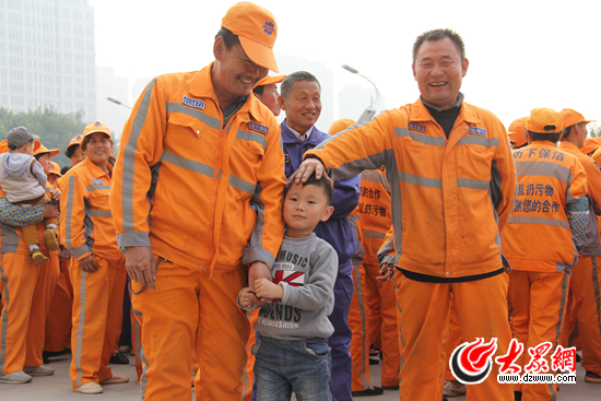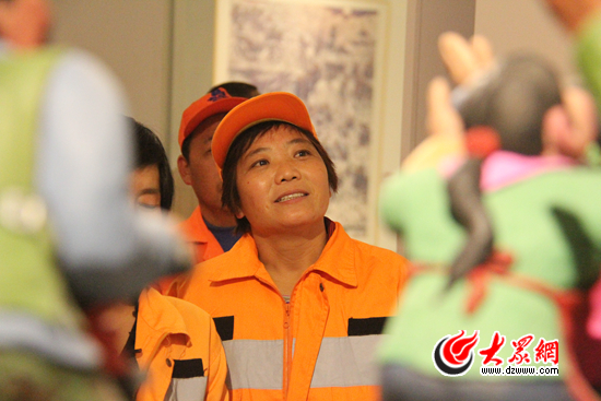 下午2:30,這群特殊的觀眾就早早列隊等候在山東美術館門前,他們當中大部分是來自基層環(huán)衛(wèi)所的環(huán)衛(wèi)工人,在志愿者的引領下,大家有秩序地進館參觀。