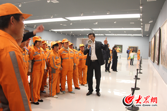 今天下午,山東省美術館迎來一群特殊的客人,近2000名來自濟南城管局的普通職工來到這里參觀全國優(yōu)秀美術作品展,與普通觀眾不同的是,給他們做現(xiàn)場講解的是山東省美術館館長徐青峰。