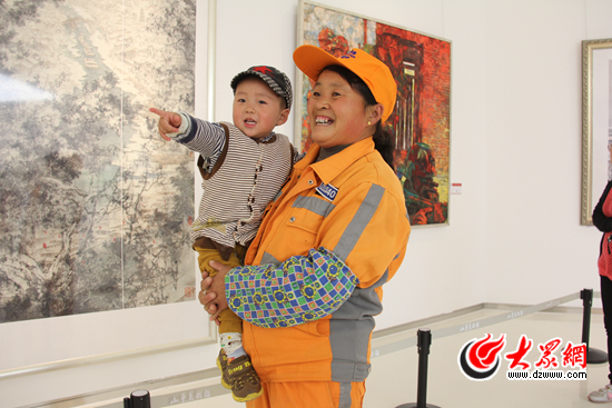 為了讓更多的人感受到藝術的魅力,此次觀展允許“帶家屬”。 來自商業(yè)街環(huán)衛(wèi)所的環(huán)衛(wèi)工人王學云告訴記者,平時工作忙,很少有機會領2歲的小外甥出來玩,“本來想趁這個機會陪陪孩子,原本還怕孩子鬧,沒想到來了一看,孩子也很喜歡。”