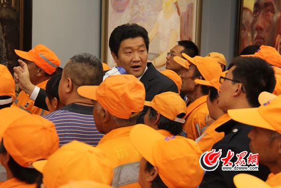 昨天下午,近2000名濟南環(huán)衛(wèi)工人來到山東省美術(shù)館參觀全國優(yōu)秀美術(shù)作品展,館長徐青峰客串“講解員”進行了約1個半小時的全程講解,讓很多觀展的環(huán)衛(wèi)工人連說“意外”。據(jù)了解,幾乎所有的特殊觀眾群體,徐青峰都會親自講解。觀展結(jié)束后,徐青峰接受大眾網(wǎng)記者采訪時表示,審美是每個人的權(quán)利,自己要對美術(shù)館傳遞的“美”負(fù)責(zé)。