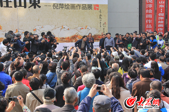 “家在山東--倪萍繪畫作品展”在山東美術館(老館)開展,倪萍在現場進行了簽售活動。此次展出是倪萍從事繪畫以來作品第一次在家鄉展覽,將持續到11月14日。質樸畫風中透露的“日子哲理”吸引了數百名參觀者,倪萍表示,畫作是獻給家鄉的禮物,繪畫是讓生命有了另外的意義。