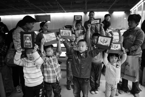 小朋友們?cè)谡故咀约旱淖髌贰∮浾咄踯鐢z