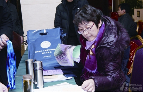工作人員認真地給與會人員辦理報到手續。