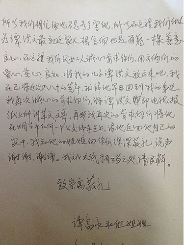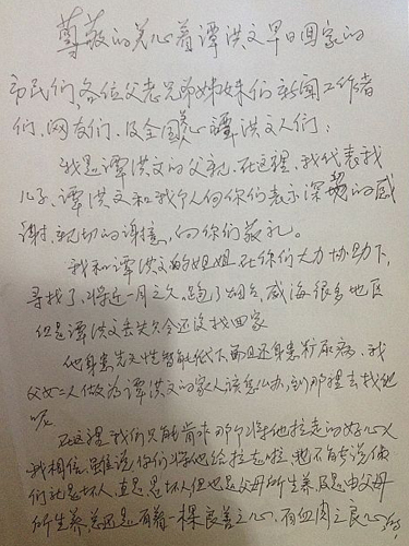 苦尋無(wú)果 譚富永寫求助信盼兒子早日回家