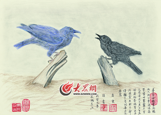 夢里涂鴉畫烏鴉,兩只張口爭說話,