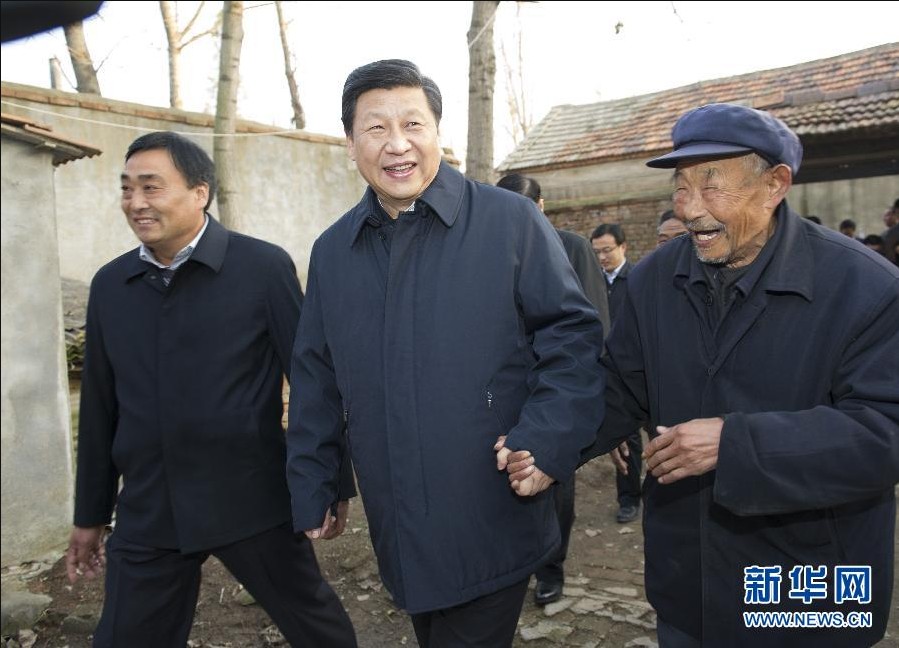 11月24日至28日,中共中央總書記、國家主席、中央軍委主席習近平在山東考察。這是25日下午,習近平在地處沂蒙老區的臨沭縣曹莊鎮朱村親切地拉著83歲的“老支前”王克昌的手去他家看望。 新華社記者謝環馳攝