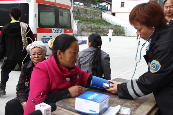 急救人員趕到蜂桶寨后,緊急為受災群眾檢查身體。大眾網特派記者 攝