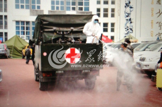 大眾網寶興4月23日訊(特派記者 尹海洋 盛堃 李兆輝)今天上午,一輛軍用防疫消洗車開入寶興縣安置點,身穿白色防護服的解放軍戰士站在車尾噴灑消毒液。負責消洗的成都軍區解放軍第42醫院院長唐偉革告訴大眾網記者,從今天起,經過了72小時黃金救援期后,震區救災進入第二階段——大規模消殺階段,以防止災區疫情的發生。