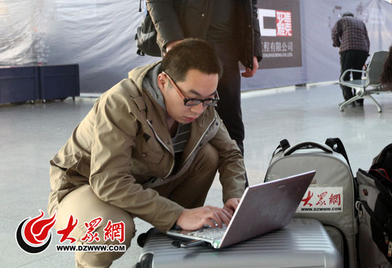 大眾網特派記者盛堃在登機前,抓緊寫一條快訊