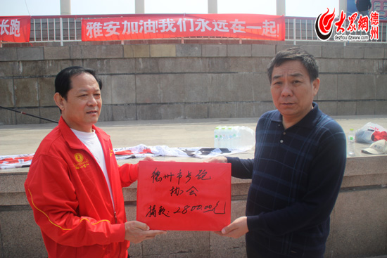 據悉,此次名為“雅安加油,我們永遠在一起”的簽字募捐行動,由陵縣小窖仙贊助、大眾網德州站攜德州市長跑協會發起的五一長跑活動,簽字募捐后百余名長跑愛好者將圍繞中心廣場連續跑25圈,全程近1萬米,另外,記者還了解到,在本次活動中,年齡最大的一位長跑愛好者已有77歲高齡,最小的只有20歲,其中年近八旬的華大爺是一名長跑愛好者,至今還保持每天跑5000米的習慣,并且這一堅持就是50年。