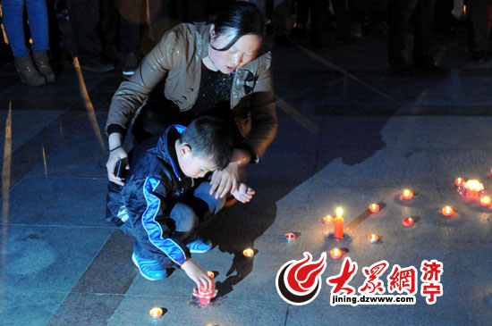 “祝福雅安 天佑華夏”鄒城人民廣場蠟燭祈福