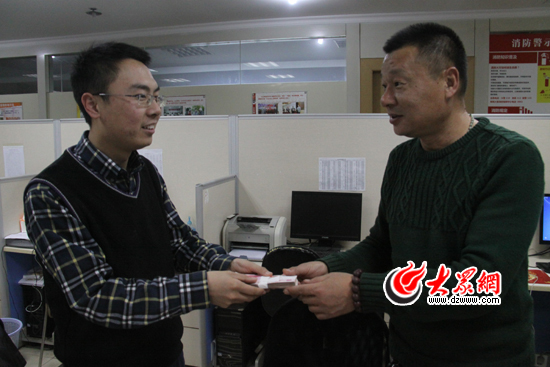 今天中午,濟南領富運輸有限公司辦公室主任劉殿杰趁著午休的時間,趕到大眾網編輯部。一進門,劉殿杰就從包里掏出一摞人民幣,交到大眾網工作人員手中,說到:“這1萬塊錢是我們公司十幾個員工湊的辛苦錢,交到你們手里我們放心!”