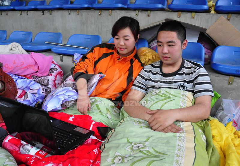 寶興縣寶興中學(xué),一對夫妻很淡定。大眾網(wǎng)特派記者 攝
