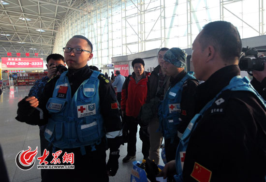山東省紅十字會藍天救援隊在濟南機場整裝待發