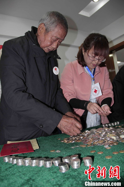 感動! 江蘇"磨刀老人"將兩年所攢兩千硬幣捐給災區