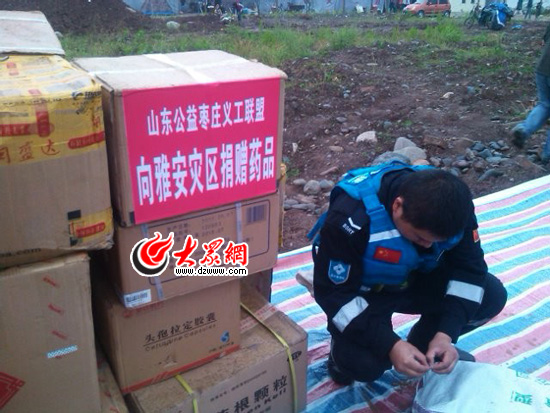 山東公益首批救援物資同時運(yùn)抵蘆山。